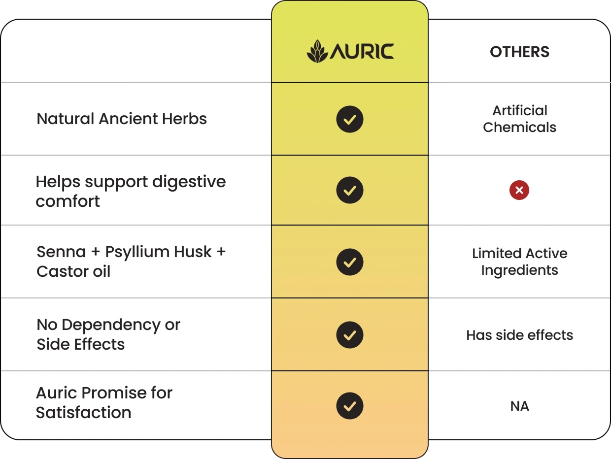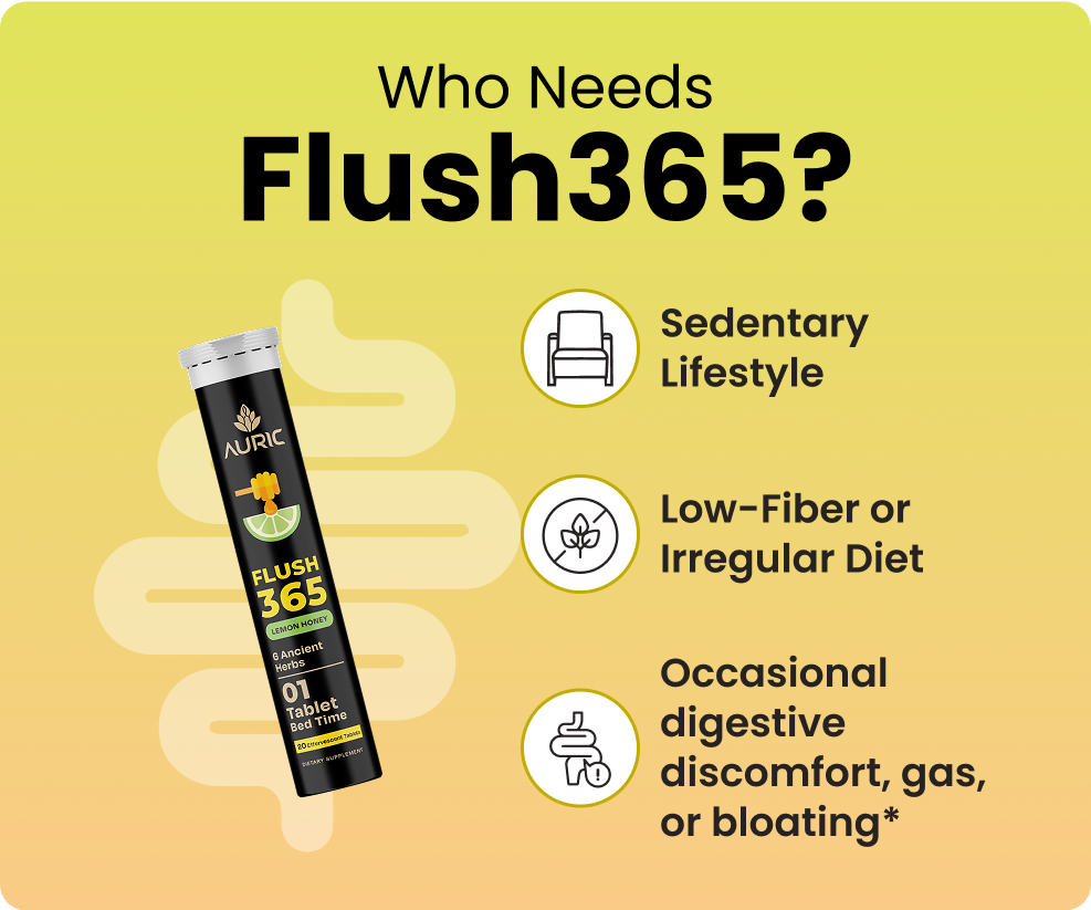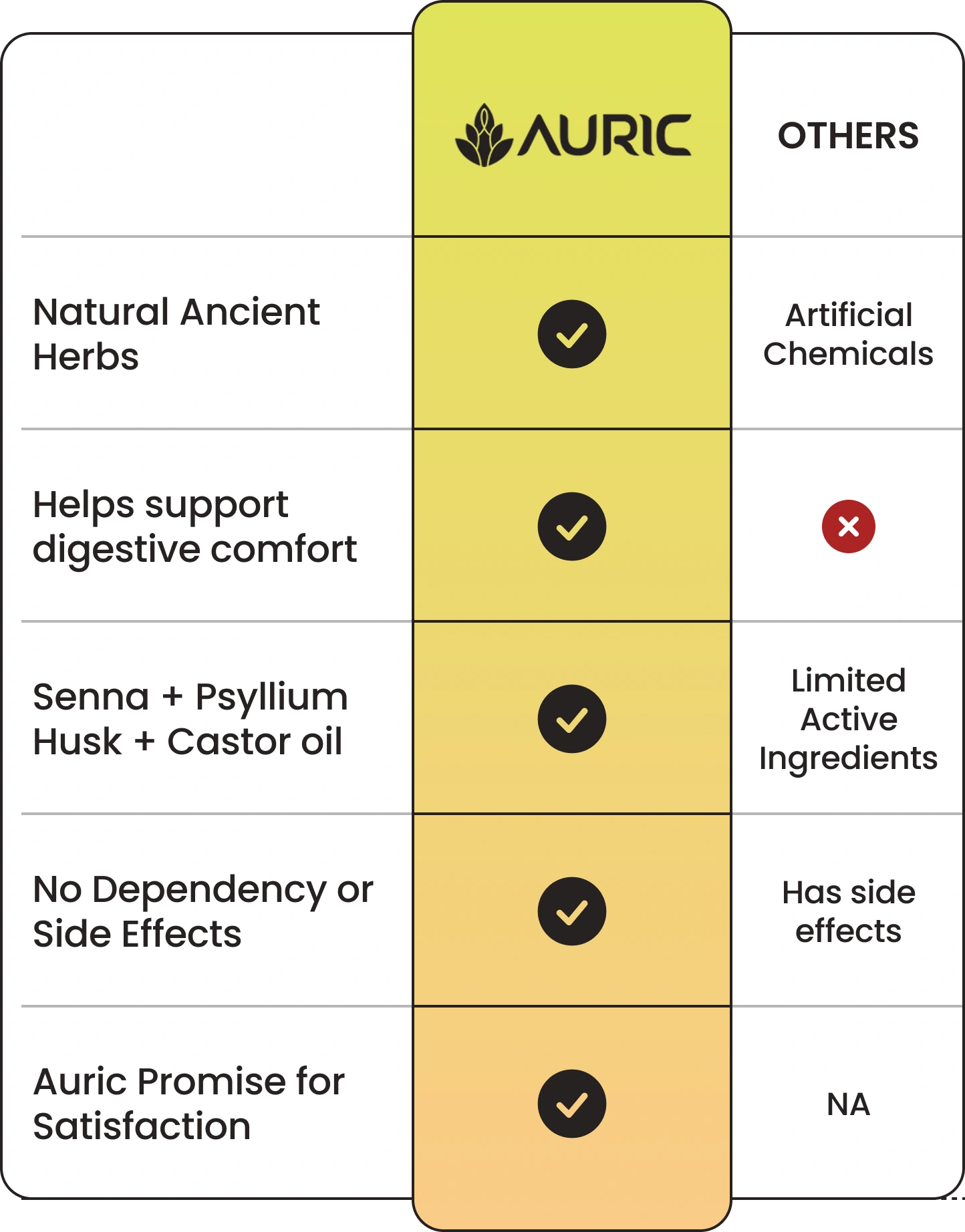 Unlike many gut health supplements, Auric Flush 365 is formulated for occasional digestive support. It combines traditional Ayurvedic herbs like Triphala, Psyllium Husk, and Castor Oil to help support normal bowel function and digestive comfort.
