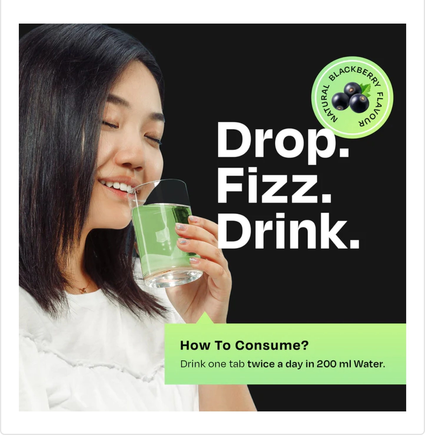 Effervescent format: Just drop in water, let it fizz, and drink. Convenient, fast-absorbing, and gentle on the stomach.*