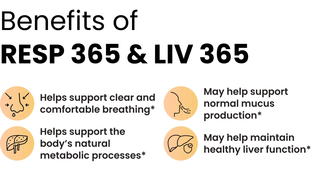 Customers appreciate the clean, sustained energy from Resp 365, noting it supports normal respiratory wellness and helps maintain everyday energy levels*. They also highlight the effectiveness and quality of Liv 365, mentioning it helps support normal digestive comfort and supports the body’s natural metabolic processes*. Both products are convenient for travel and integrate easily into daily wellness routines.