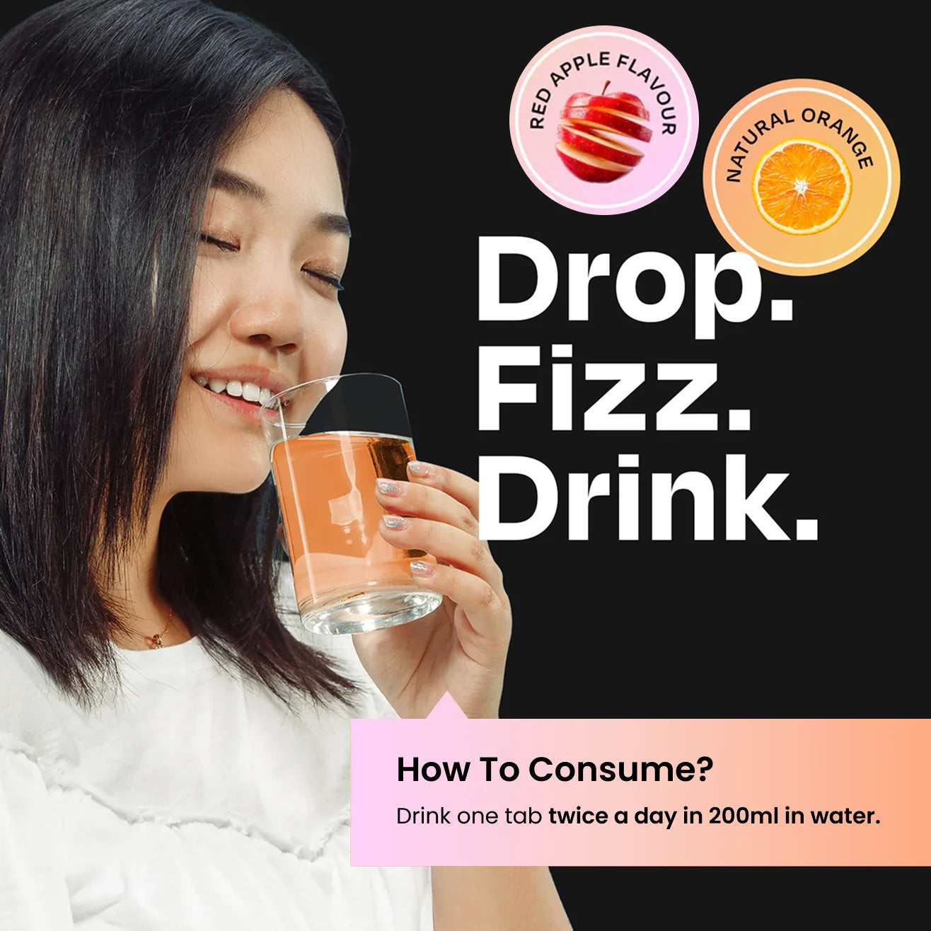 Effervescent format: Just drop in water, let it fizz, and drink. Tasty, fast-absorbing, and gentle on the stomach.