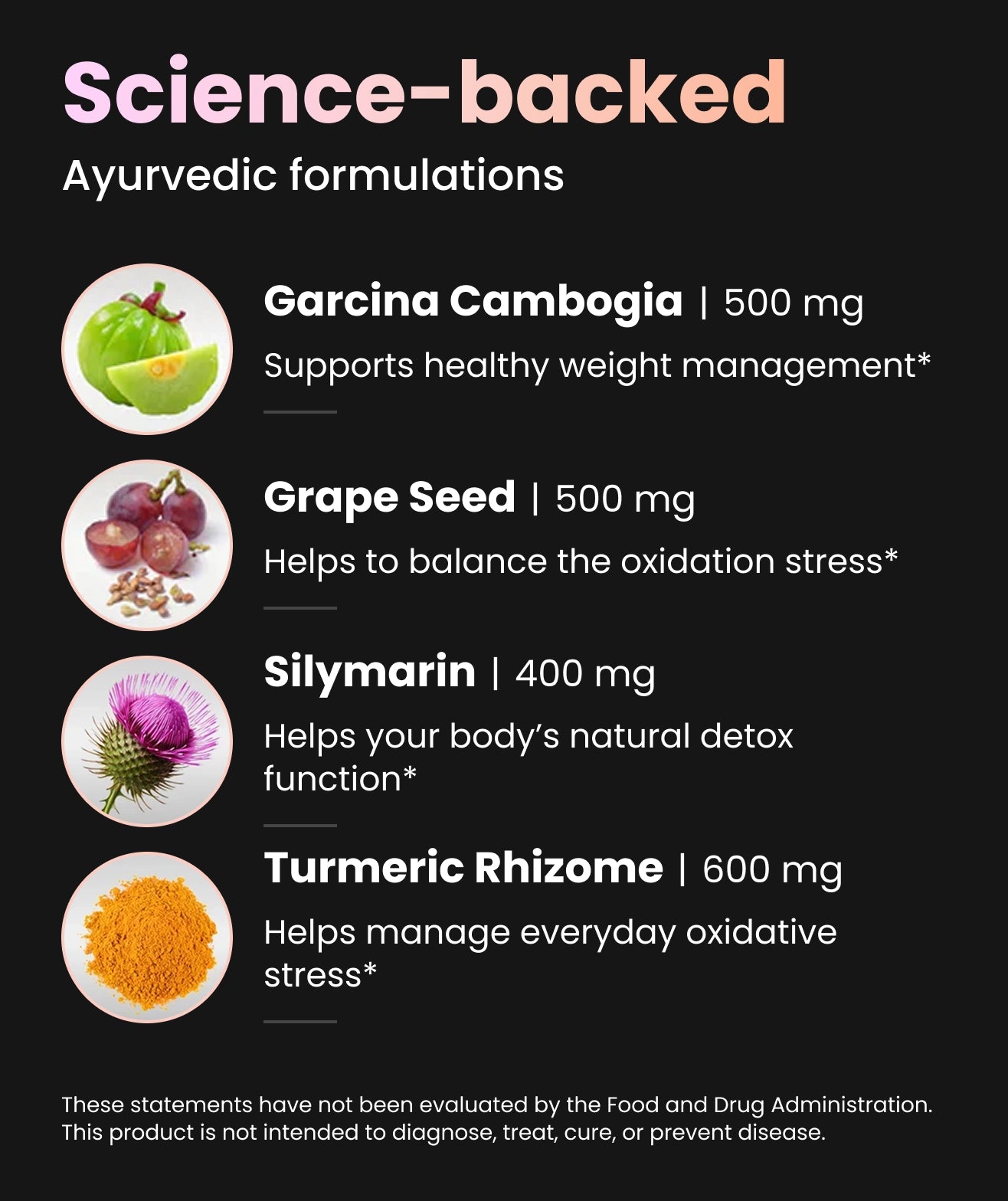 Unlike many liver supplements that rely on just one or two ingredients, The Combo combines a synergistic blend of 7 potent Ayurvedic herbs like Milk Thistle, Dandelion, Licorice & LivlongaTM (Combination of Turmeric, Garcinia, Black pepper) - a clinically validated ingredient for liver support.