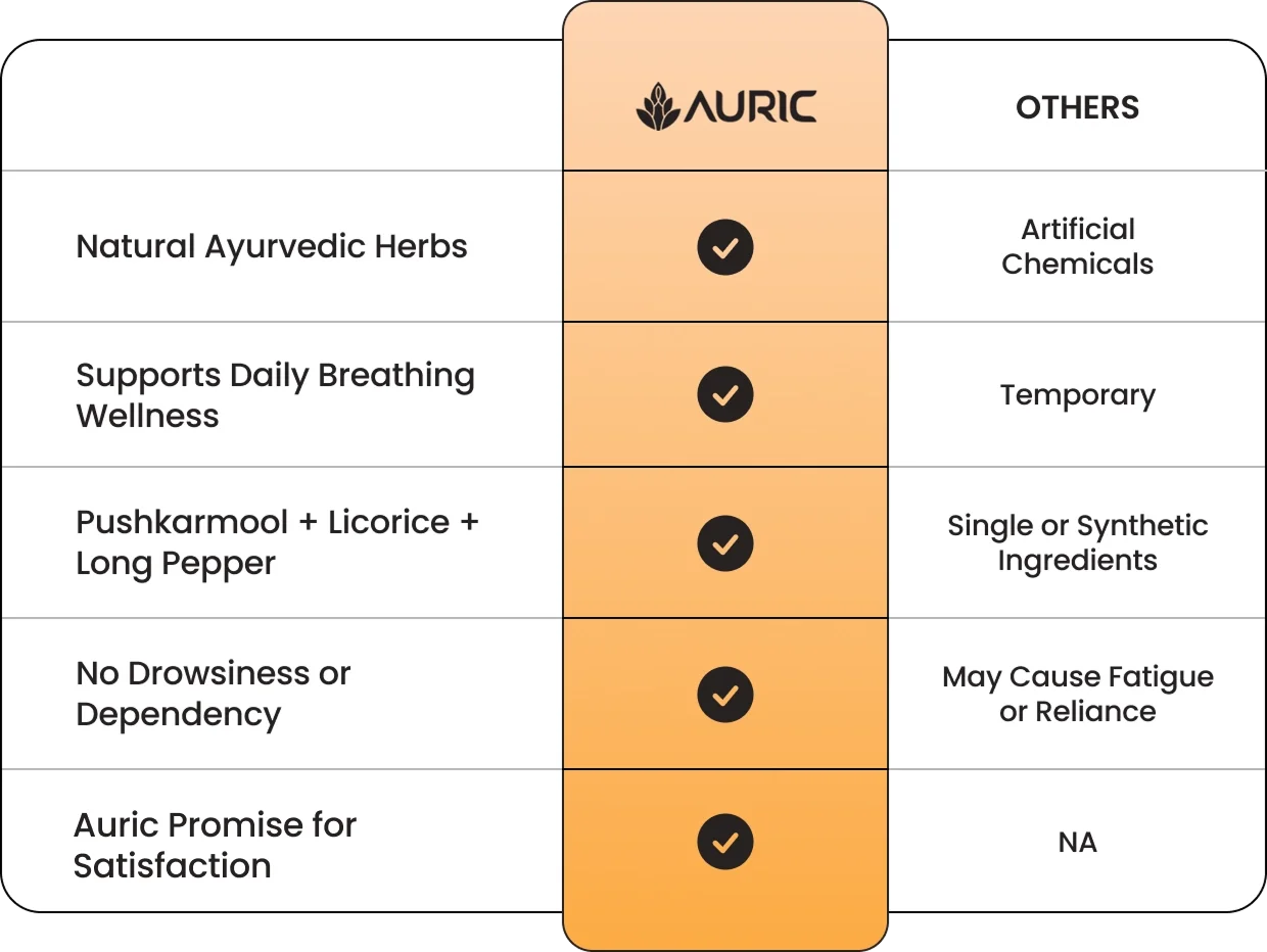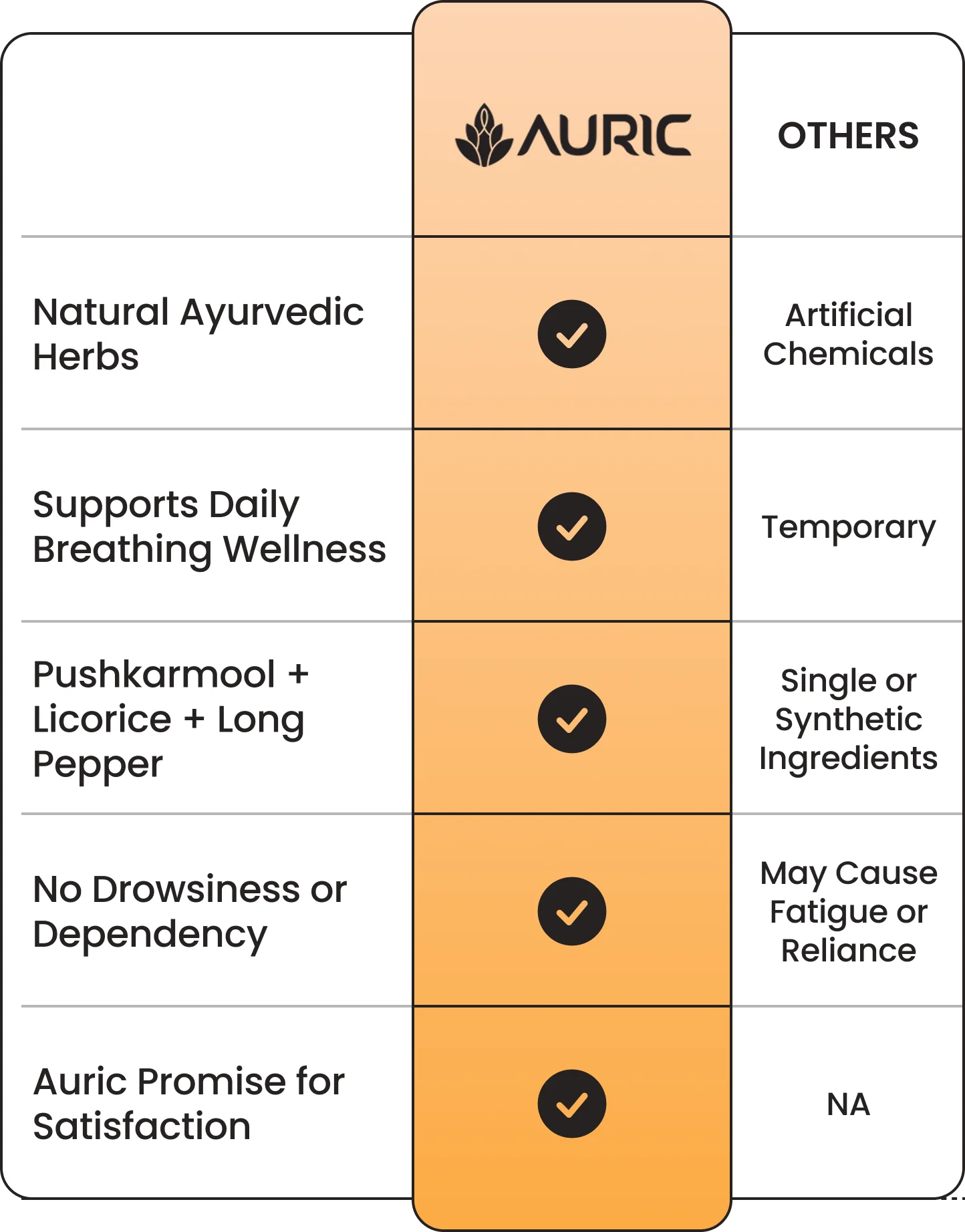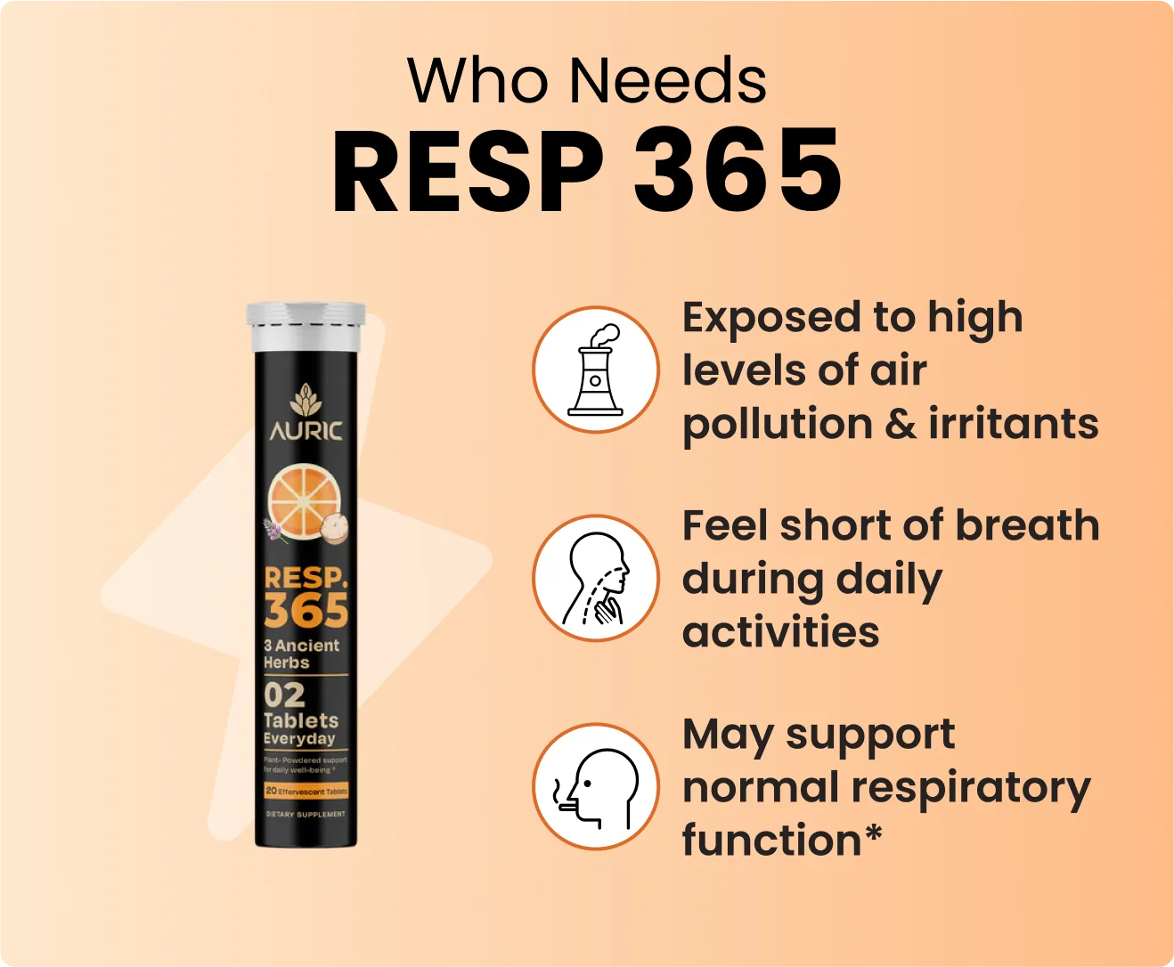 Most supplements focus on just one herb or come in hard-to-swallow capsules. Auric Resp 365 combines a synergistic blend of Ayurvedic botanicals like Pushkarmool, Long Pepper, and Licorice, together with NAC — brought together in an effervescent format for general wellness support.*